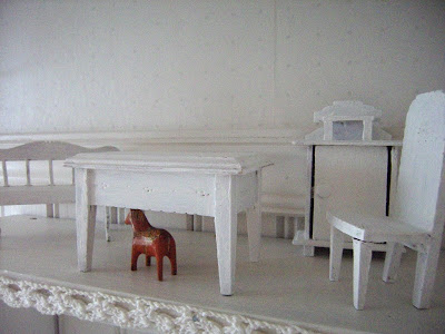 Men hur gulliga var inte dom möblerna !! Och hur liten är inte dalahästen , ha , ha !! Smart att köpa så där små möbler de tar ju inte så stor plats och då behöver man ju inte göra sig av med några andra hemma ;-)Ha det gott nu !